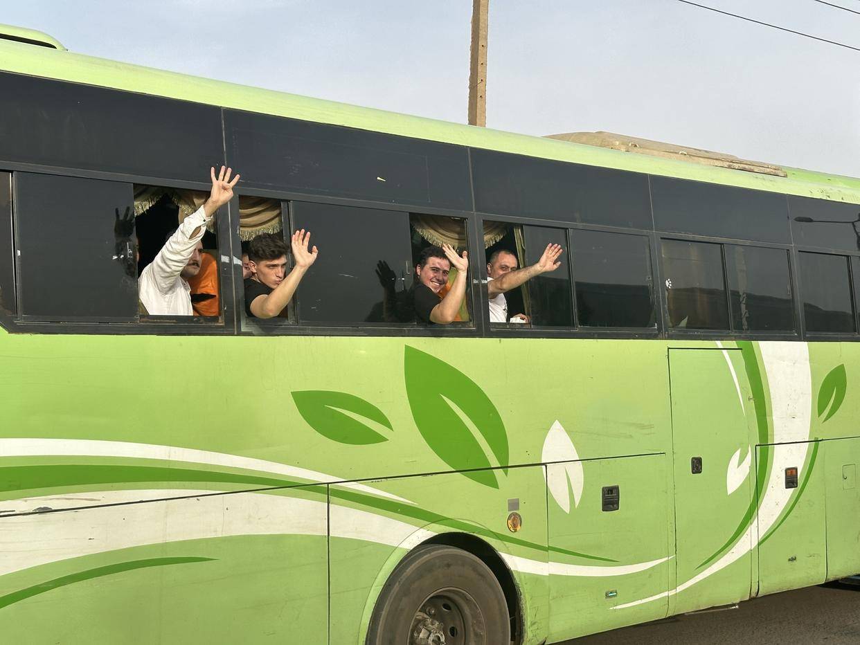 当地时间2024年4月23日,苏丹苏丹港,印度尼西亚公民从喀土穆乘公共汽车撤离。视觉中国 图