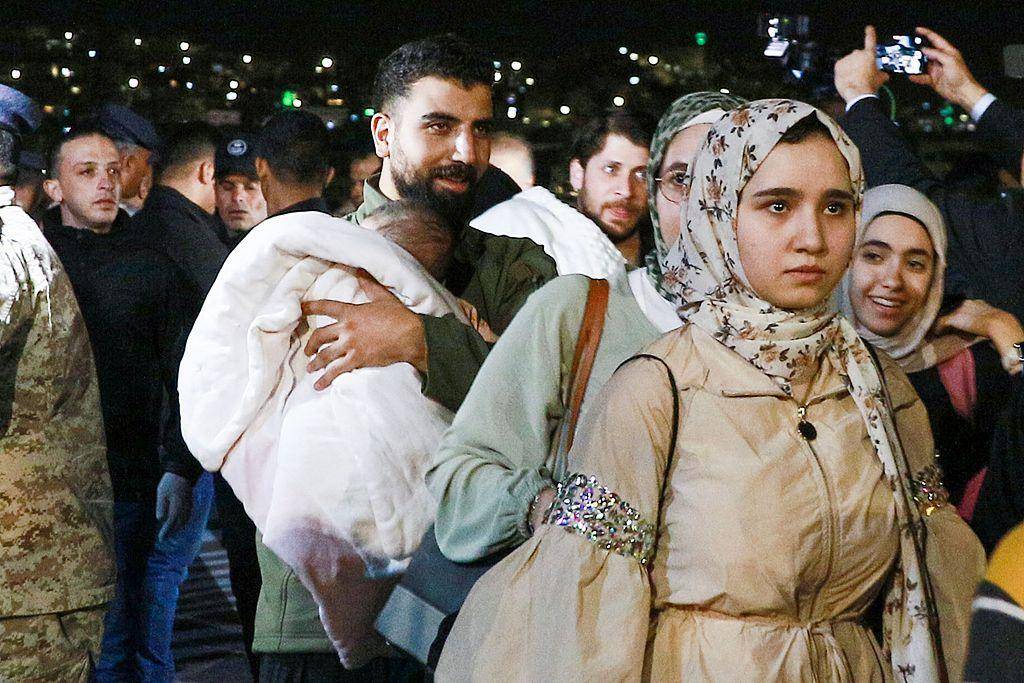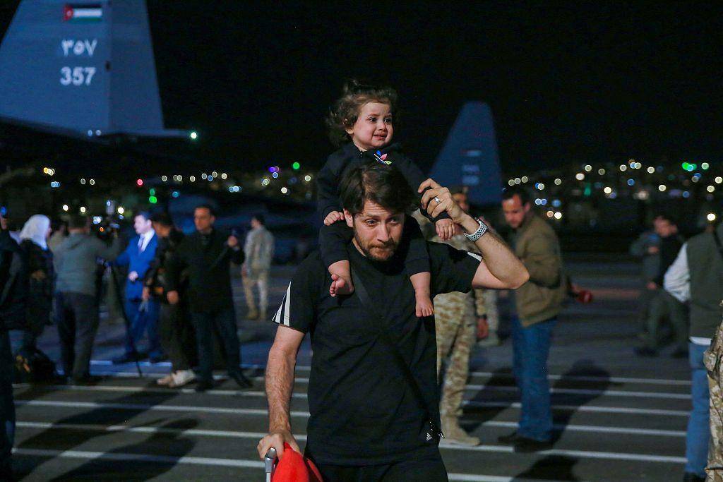 当地时间2024年4月24日,约旦安曼,从苏丹撤离的约旦公民乘坐军用飞机抵达军用机场。视觉中国 图