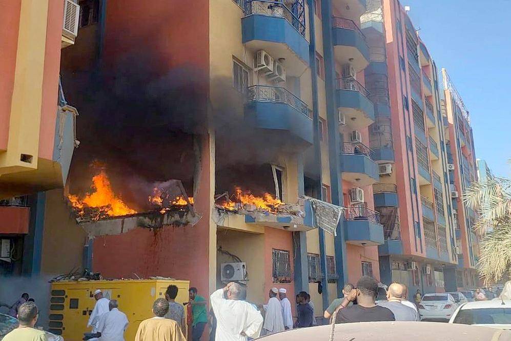 当地时间2024年4月20日,苏丹喀土穆,一栋房屋被击中后发生火灾。视觉中国 图 撤离难度大持续的战火,多地硝烟四起,各国纷纷开启多种渠道加快撤离在苏丹的本国公民。