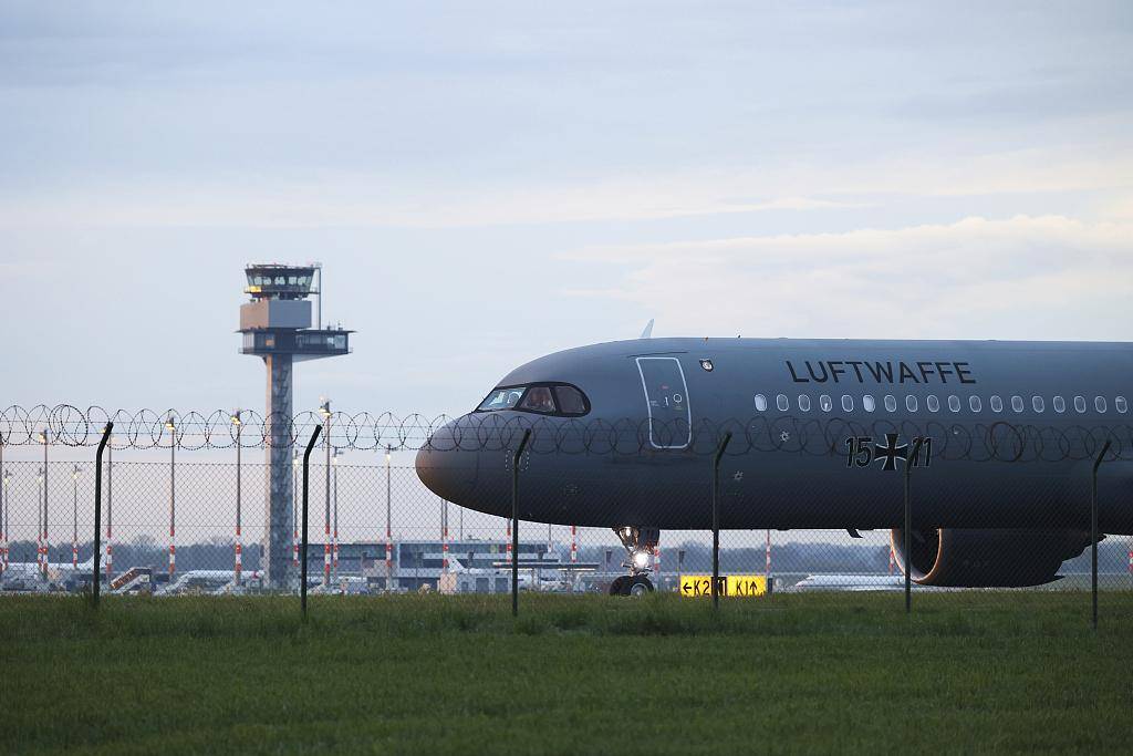 当地时间2024年4月24日,德国舍讷费尔德,一架载有从苏丹撤离的德国公民的空中客机降落在柏林勃兰登堡机场。视觉中国 图 印尼