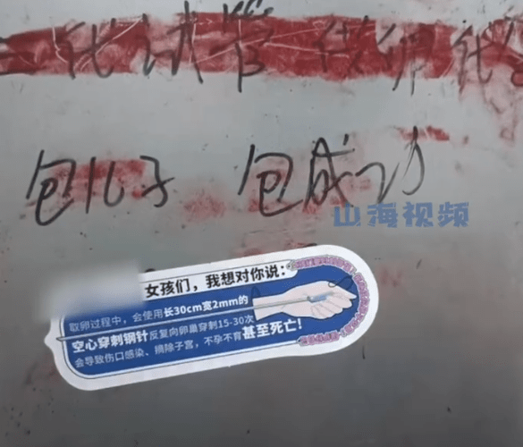 4月26日,据山海视频报道,近日,广西柳州一女生用贴纸遮盖厕所里的代孕广告,引起广泛关注。