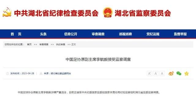 中国足球协会原副主席李毓毅涉嫌严重违法,目前正接受中央纪委国家监委驻国家体育总局纪检监察组和湖北省监委监察调查。