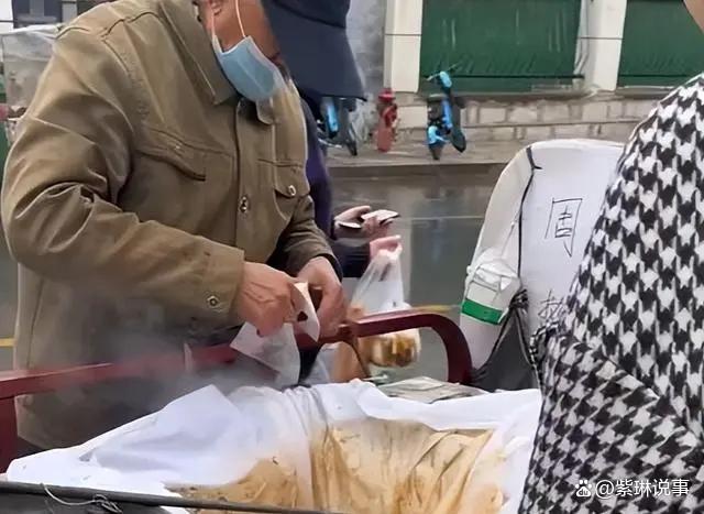 这位大爷叫王德春,今年70岁,是周村的老字号绿豆糕师傅。他从小就跟着父亲学做绿豆糕,已经有60多年的历史了。他的绿豆糕是用纯手工制作的,选用优质绿豆,加入红枣、桂花、核桃等配料,用木柴火慢慢熬制,味道香甜软糯,营养丰富。他每天只做一锅绿豆糕,约100多斤,价格是10元一斤。