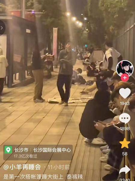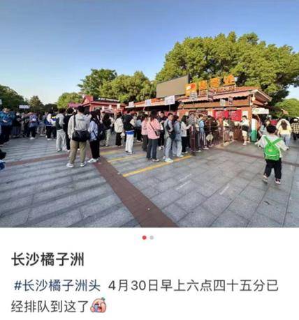 在长沙,排队不分昼夜,最好整晚不睡。有游客为了赶上4月30日在长沙国际会展中心举办的音乐节,连夜去会场门口排队,凌晨2点在音乐节门口搭起帐篷。还有一些旅游特种兵把后天要排的队都预约完了,岳麓山、橘子洲景区门票已经预约一空。