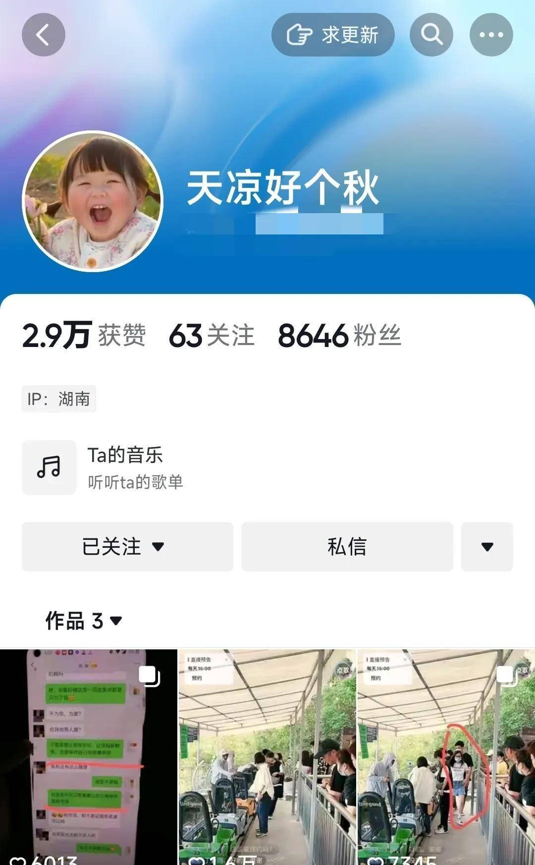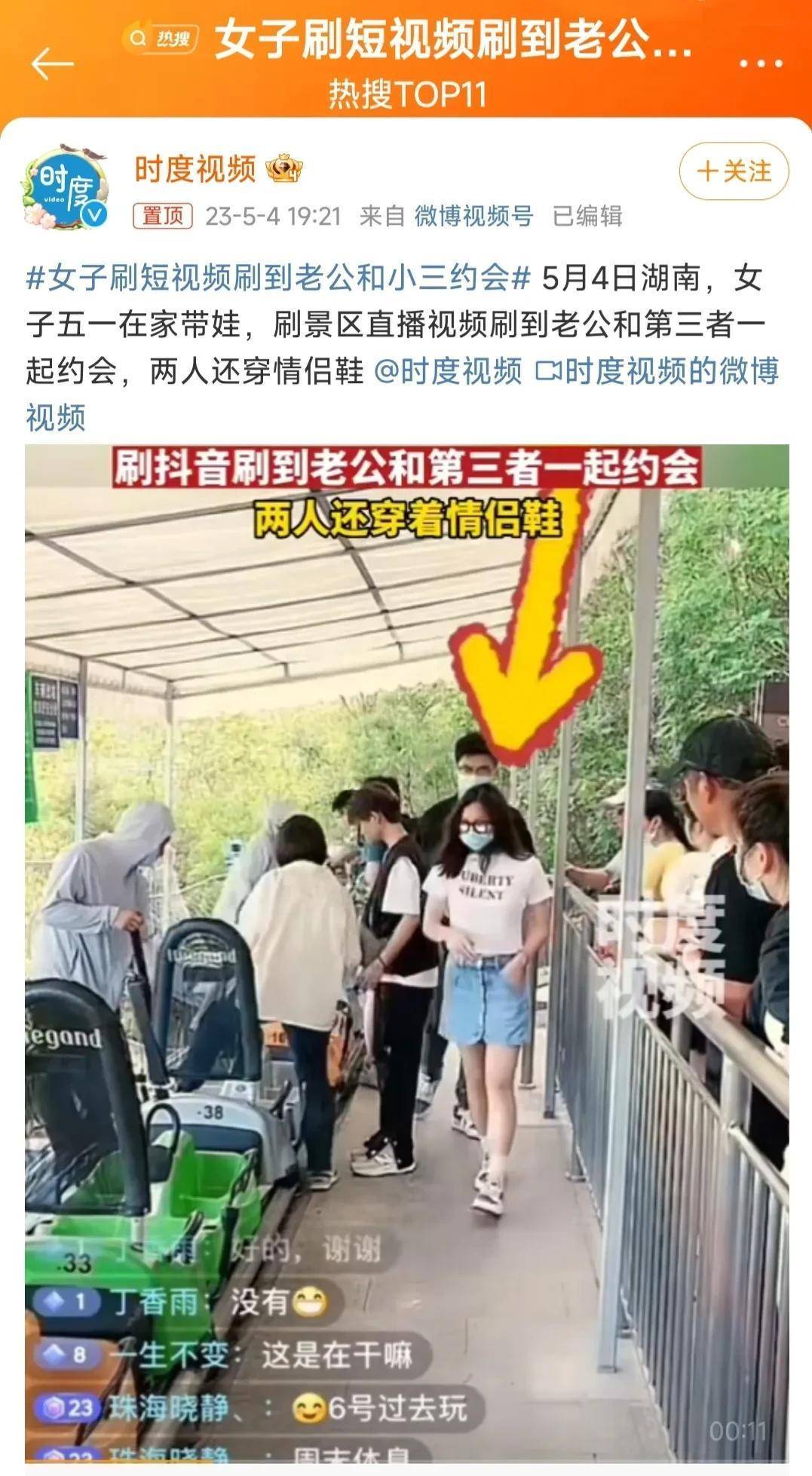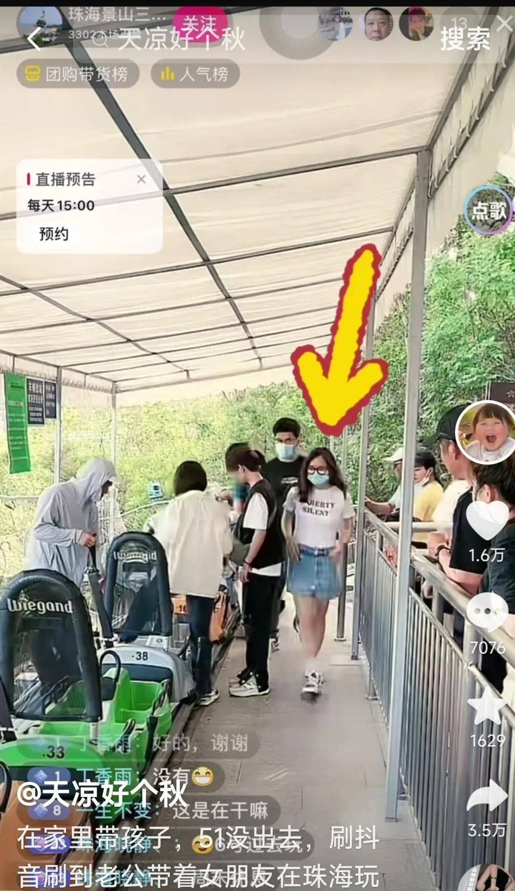 女子透露,自己五一没有出去玩,在家带孩子,刷抖音刷到老公带着女朋友在珠海玩。