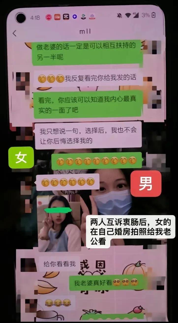 女子老公和之间平常聊天都是打情骂俏的,两人承认了肉体,肯定是发生了关系,坐实了身份,跟自家老公在一起的时候还会幻想人家老公,在自己婚房里还跟人家老公拍照。