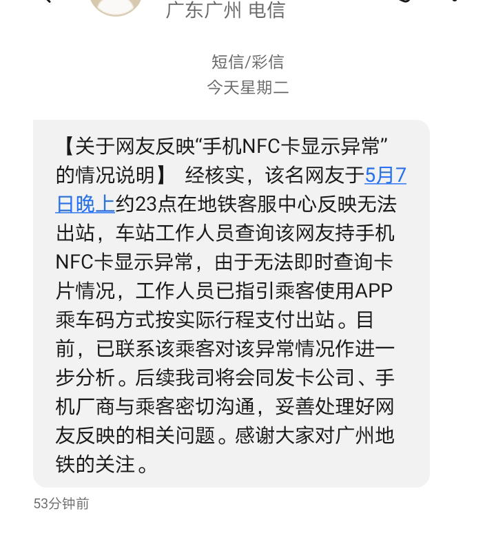 后续广州地铁将会同发卡公司、手机厂商与乘客密切沟通,妥善处理好网友反映的相关问题。
