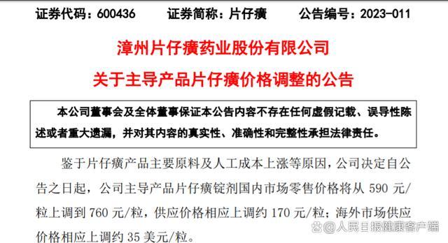 片仔癀公告。