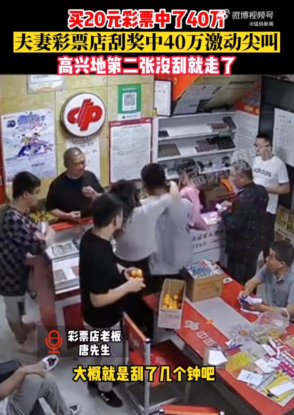 5月16日,湖南长沙。浏阳一彩票店老板发视频称,夫妻俩刮刮乐中奖40万。彩票店老板唐先生表示,当时夫妻俩带着孩子20元买了两张刮刮乐,刮第一张的时候就中了,非常激动,第二张还没刮就回家了,他做彩票行业10年,这种奖之前也见过。