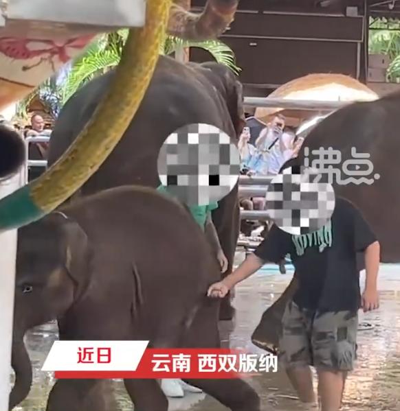 5月18日,据陕西商网援引沸点视频报道,近日,在云南西双版纳,网传曼听公园内,因小象活泼好动,饲养员用针状物体扎小象,小象疼得直跪地,随后躲到大象妈妈身子旁,但仍被扎。