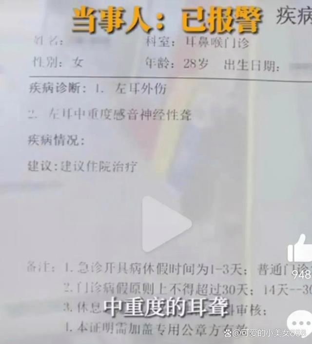 据女子的朋友介绍,事后女子去医院检查身体损伤情况,发现自己已有身孕并出现了肚子痛,有一边耳朵出现中重度耳聋!对方至今没道歉没有赔偿,医药费还是自己垫的,目前警方正在处理中!