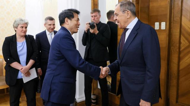 当地时间26日,中国政府欧亚事务特别代表李辉与俄外长拉夫罗夫会面。(图源:法新社)