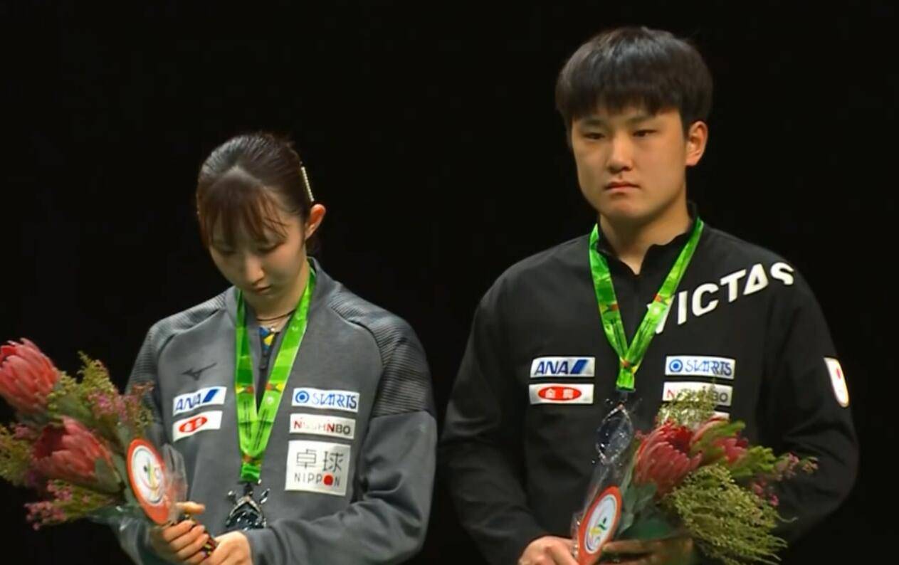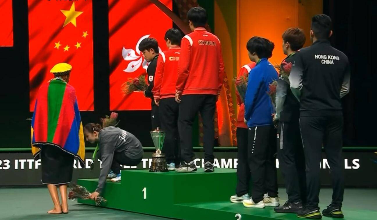 德班世乒赛混双决赛,孙颖莎/王楚钦轻松3比0横扫早田希娜/张本智和卫冕成功,颁奖典礼的时候出现一个小插曲。