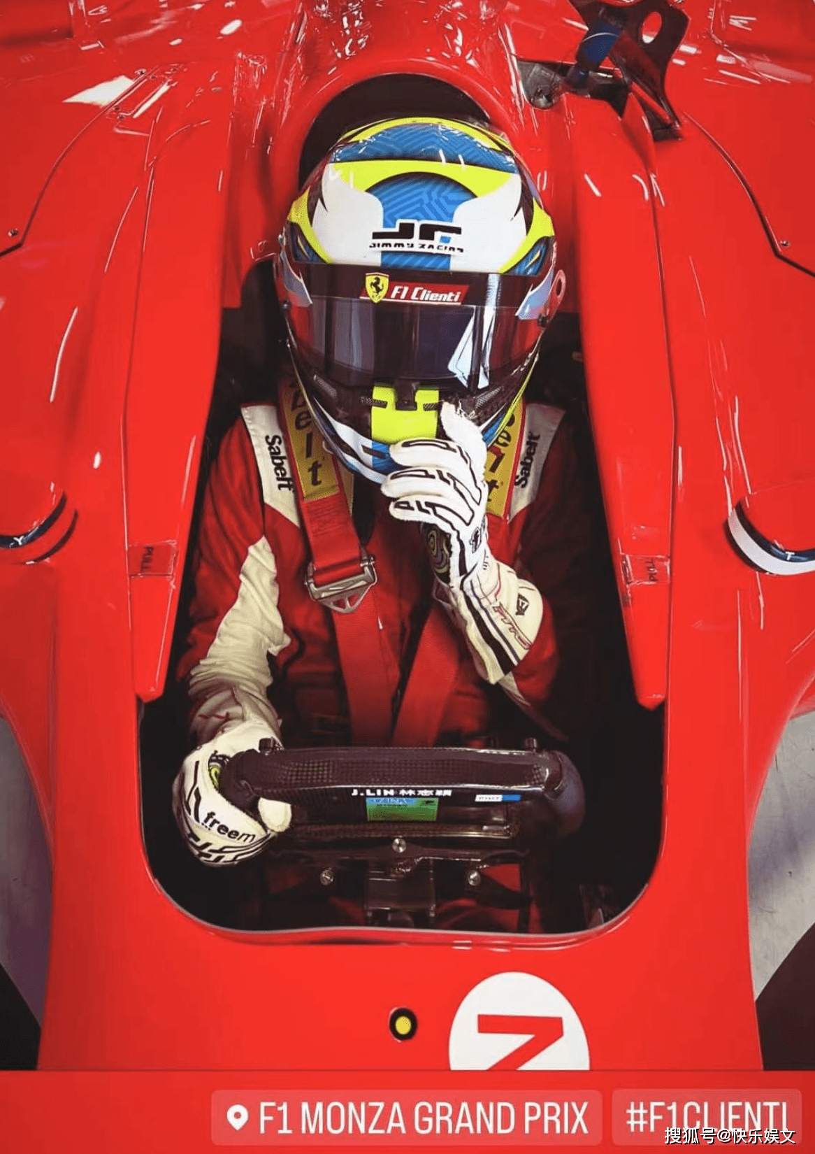 照片中,林志颖全副武装,坐在红色FI的赛车手,一副蓄势待发的样子,帅得让人大吃一惊。