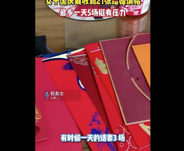 9月23日,在广西梧州,一女子国庆前夕收到21份结婚请帖的视频走红网络。