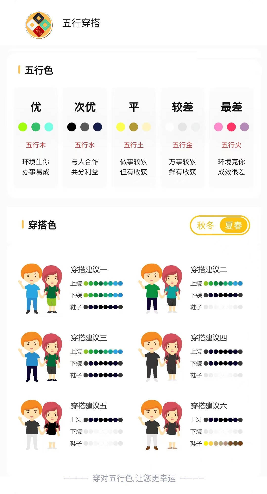 一些聪明的人都知道,人的五行运势和衣服颜色有一定的关联,所以我们可以通过了解当天的五行情况来选择适合自己的最佳颜色。一个好的颜色能够给人带来幸运旺盛的运势,为人们所喜欢和接受,所以一定要根据当天的黄历情况来做出最为正确的选择搭配。