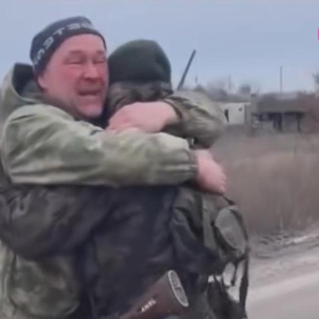 俄罗斯父子在前线相遇 深深相拥