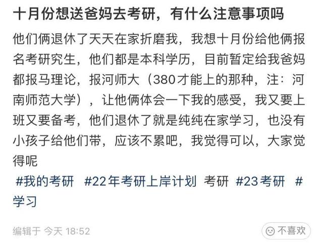 对于爹妈陪你一起考研,结果双双考上了一事,你怎么看?