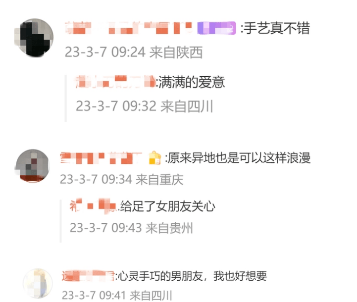 不少网友表示“这个男朋友真细心”、“没想到异地也能这么浪漫”、“别人的男朋友总是那么贴心,原来甜蜜的爱情是别人的”。近日,湖北武汉一女孩发布了一段视频,展示了男友的手工包。视频在网上发布后,引起网友热议。不少网友表示“这个男朋友真细心”、“没想到异地也能这么浪漫”、“别人的男朋友总是那么贴心,原来甜蜜的爱情是别人的”。