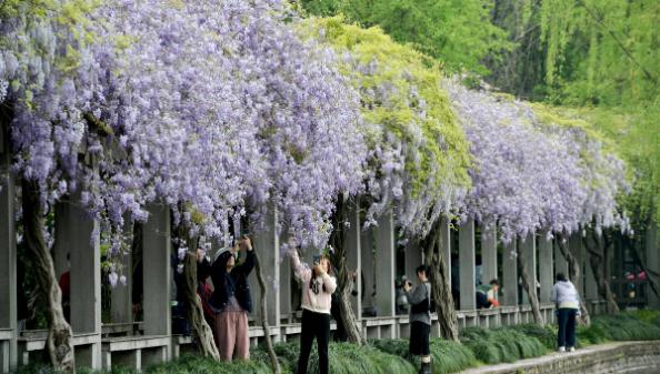 据了解,紫藤花的花期还不到一个月,有喜欢的朋友们,快来华家池感受这浪漫的春天吧!