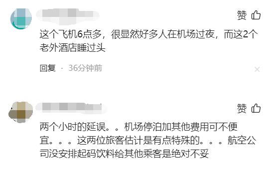 对于此事,有些网友将矛头指向了两名外国旅客。一些网友则认为航空公司处理不妥当,应与机上乘客说明具体情况,并准备好餐食及补偿方案。