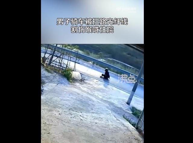 4月8日,四川自贡,一男子下班骑车,阳光刺眼没注意,被拦在路上的光纤线割伤颈部住院。当事人朋友童先生表示,现场发现两个通讯公司的光纤入户线,不确定是哪个公司的,已经报警,正在等待调查结果。感觉施工安全隐患比较大,也希望大家骑车注意安全。